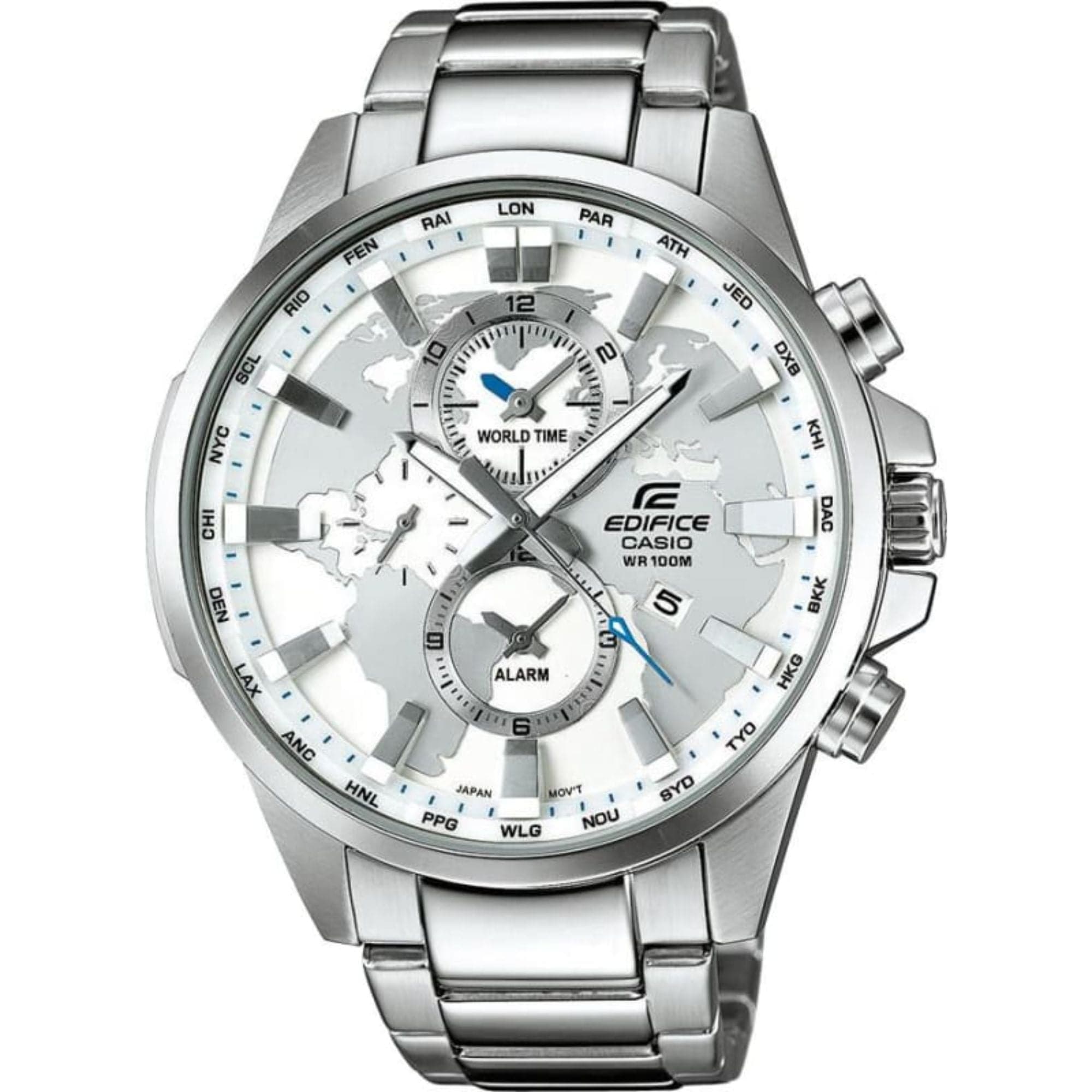 | Function | 3 Hands, Chronograph, World Time |