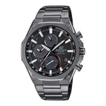 Bluetooth? Smartphone Link, a Tough Solar power system that enables charging by exposure to even small amounts of light, and seven-hand chronograph timekeeping, all come packed into a case that is a mere 8.9 mm thin. The octagon bezel contributes to a design that is sporty, yet elegant. The highly scratch-resistant sapphire crystal has a non-reflective coating on its inner surface to enhance readability. The EQB-1100DC is the first model of the EDIFICE lineup to come with a gray ion plating (IP) finish.