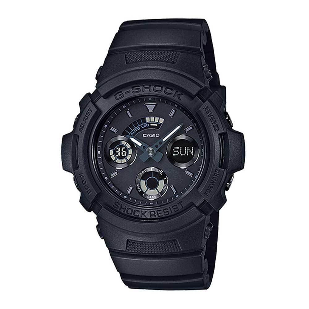From G-SHOCK, the watch that sets the standard for timekeeping toughness, comes the latest models to feature basic G-SHOCK black that captures the essence of one-tone resin. This model is based on the compact and practical AW-591 design. A simple matte black finish allows the form of the watch itself to come out, while the buckle, buttons, and bezel have a black ion plate finish. Everything about this new basic black model captures the very essence of the rough, tough basic G-SHOCK image.