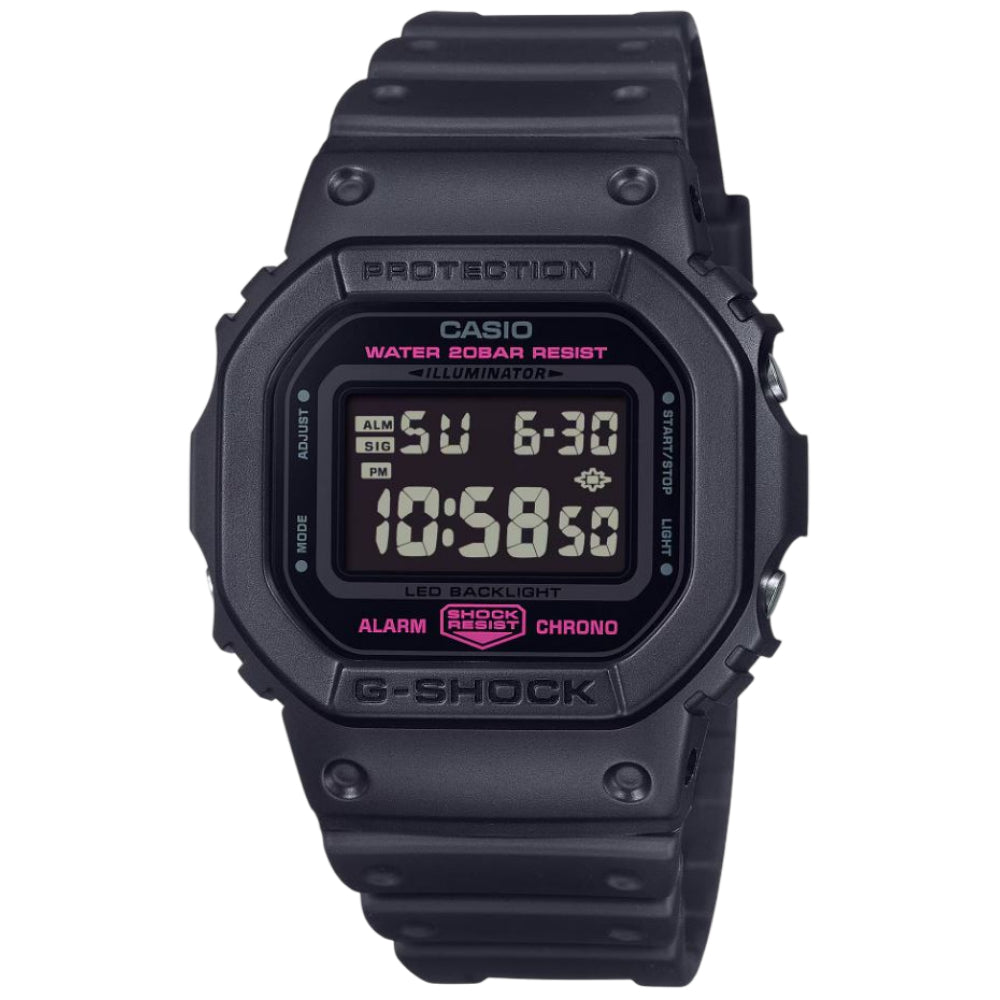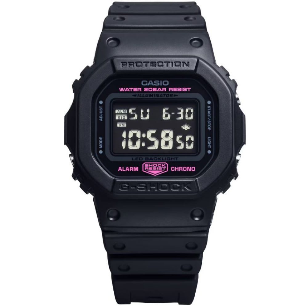 Join the fight against breast cancer with the DW-5600PK, a black G-SHOCK with subtle pink accents, or the more compact all-pink GMD-S5610PK.