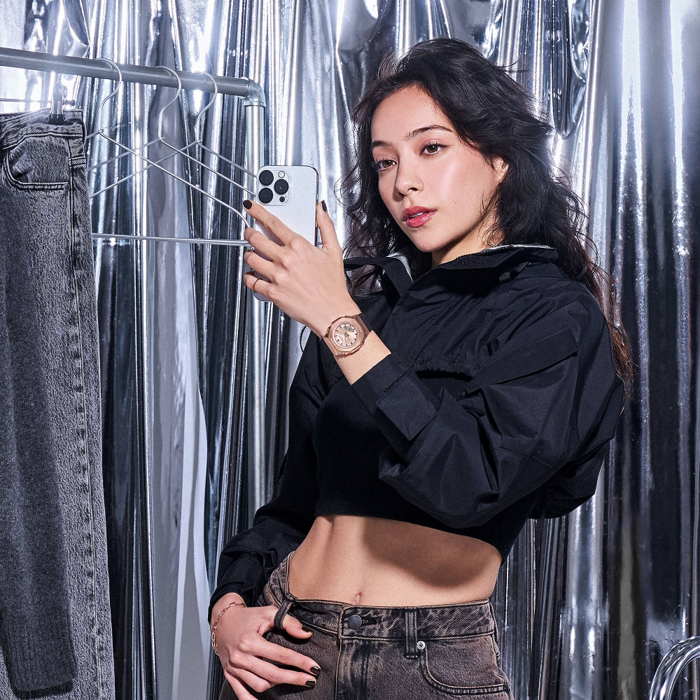 Metal elements in the dial add shine and texture, while the compact size ensures a comfortable fit for slimmer wrists. The sophisticated, minimalist design beautifully complements whatever you’re wearing, from stylish fashion to casual cool.