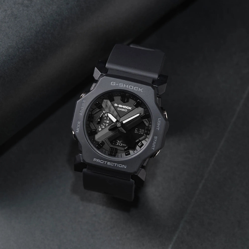 A compact G-SHOCK in a boldly straight-forward design that moves style into the future. The tough digital-analog combination GA-2300 goes smaller and slimmer to meet today’s needs, delivering just what you require from a watch in a minimalist design with a futuristic sensibility.