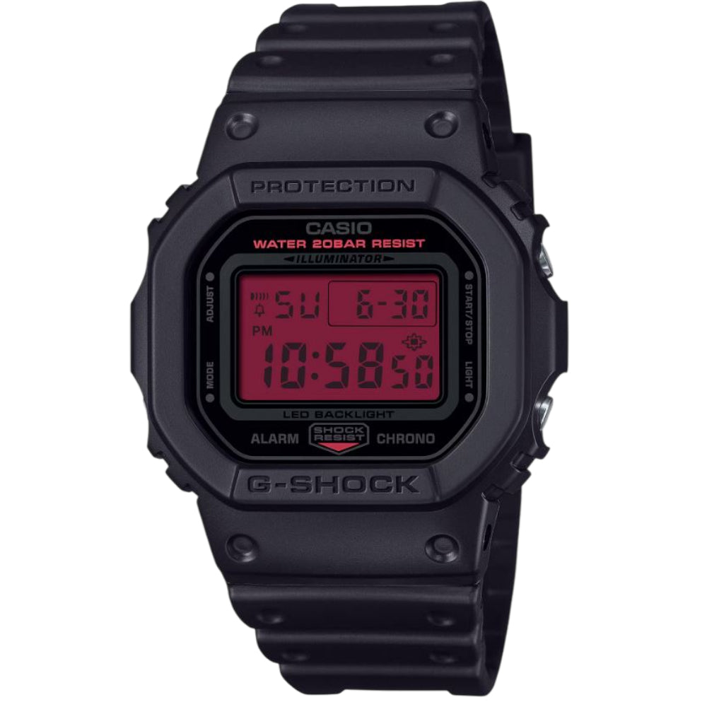 Go bold, tough, and intense, with the G-SHOCK black and red collection.