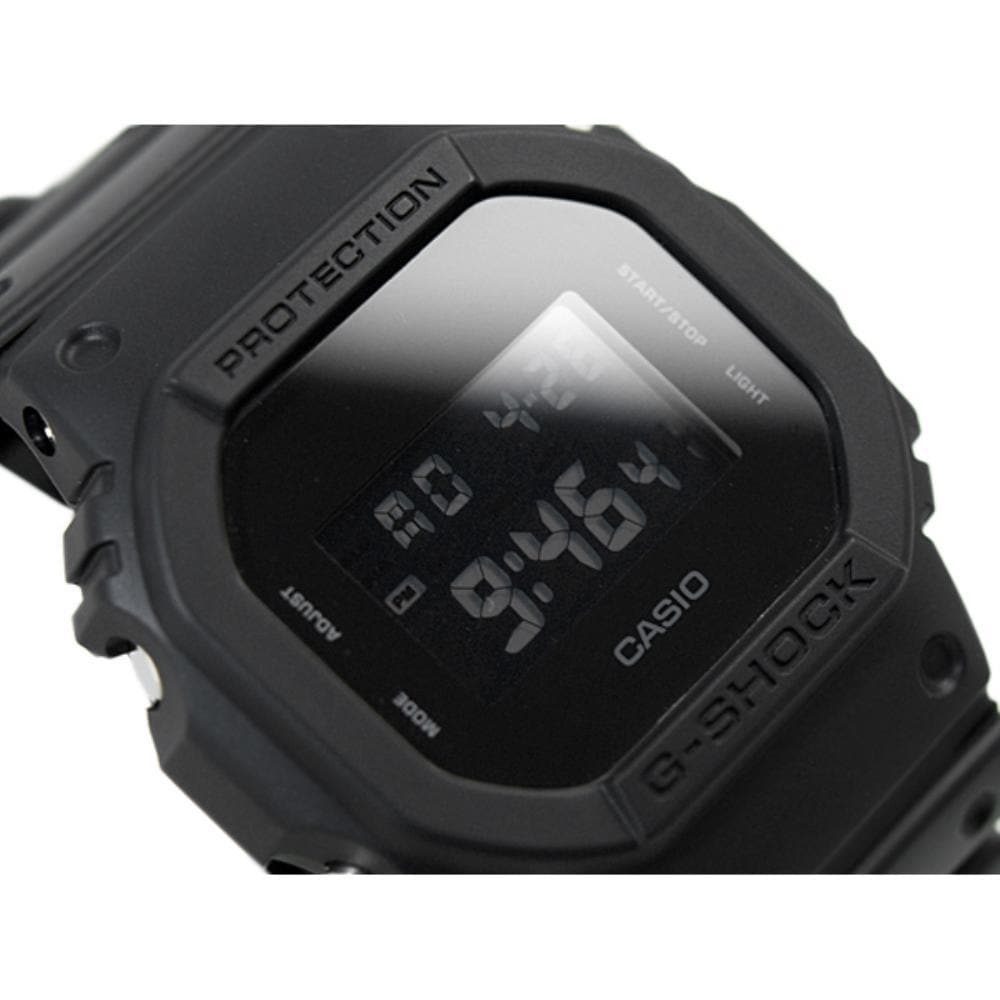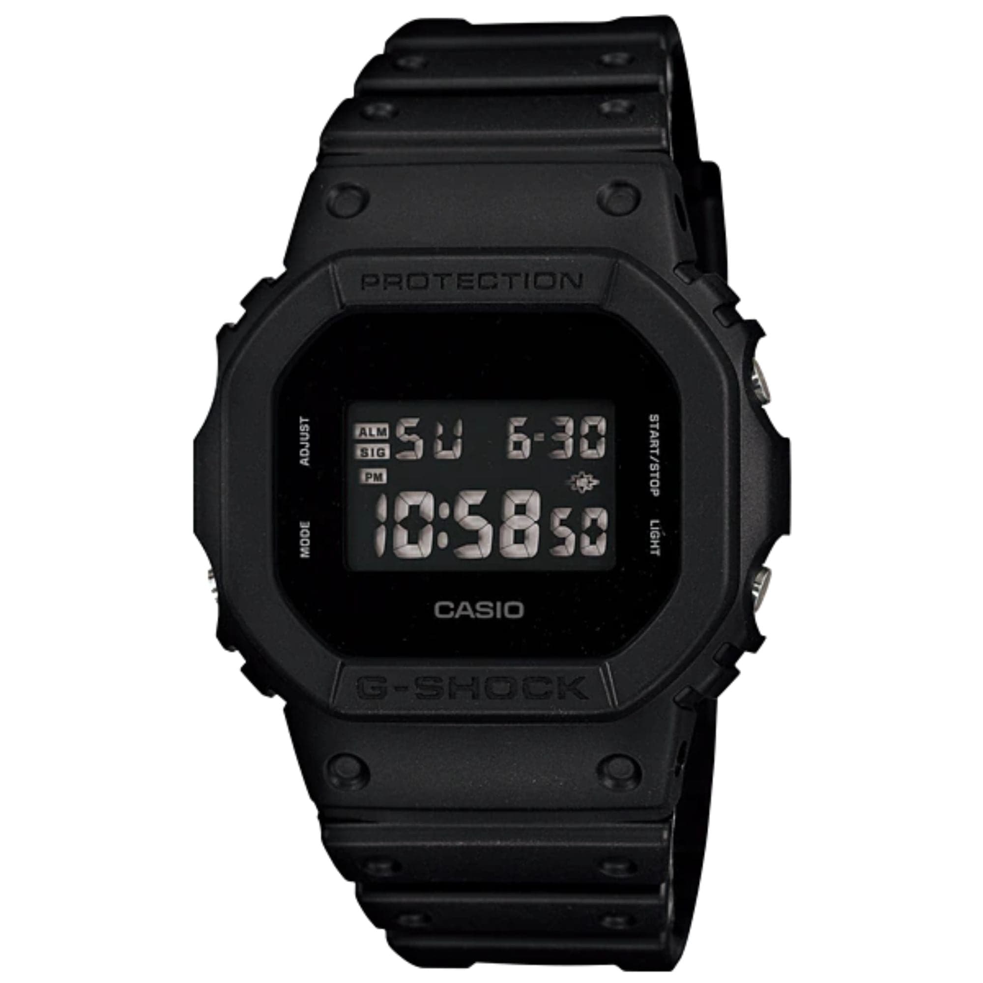 From G-SHOCK, the watch brand that is constantly setting new standards for timekeeping toughness, comes a basic DW5600 case silhouette with monotone black coloring. The face of the watch is all black with a matching LCD which creates a sleek and tactical look, even in the dark, the back lit display makes reading the time easy. Functions include stopwatch, countdown timer and alarm, so this model will cover all of your basic timekeeping needs.