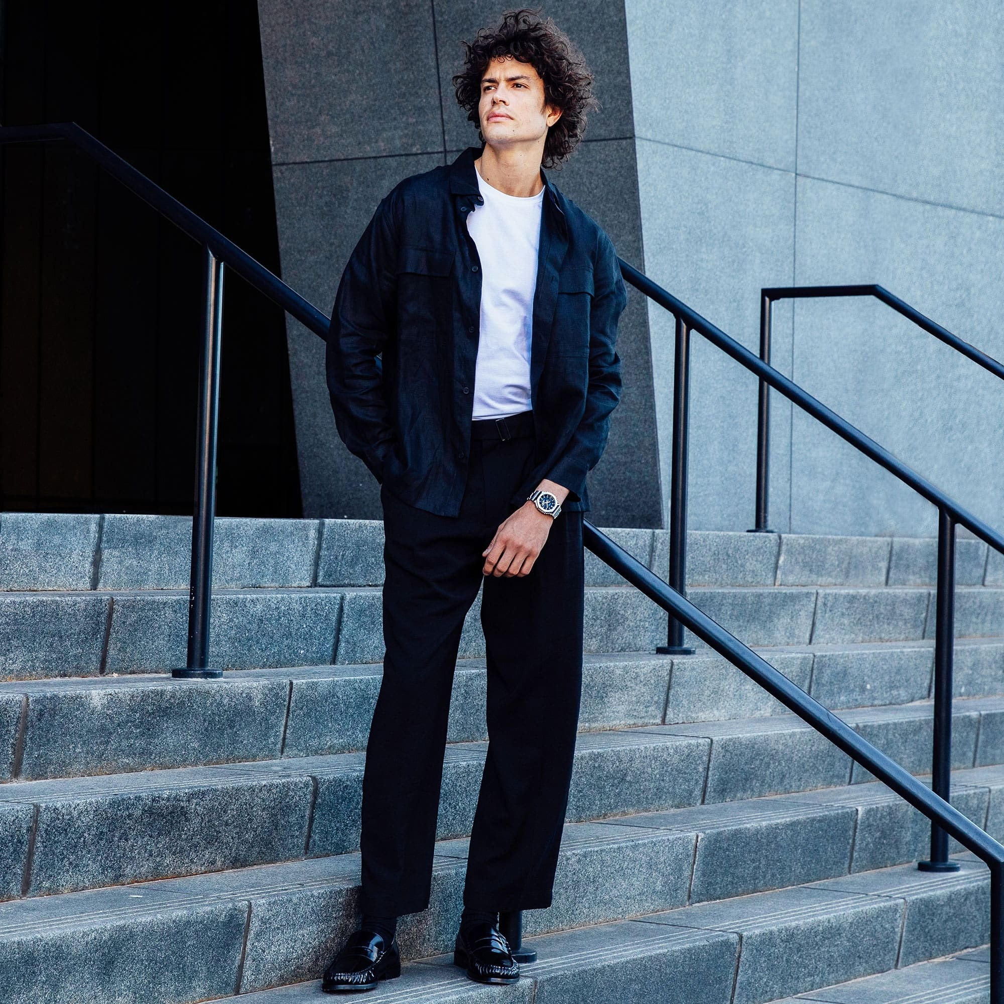 The metal band, together with a pop of fresh color from the metallic brass dial, is up for anything — work or play.