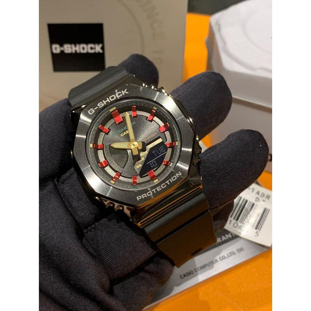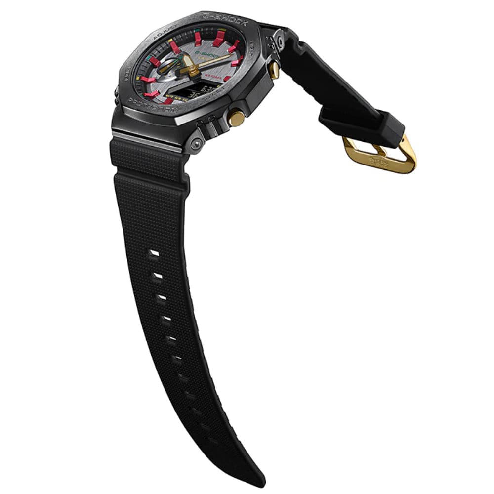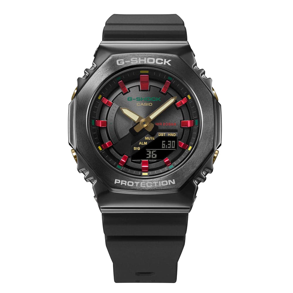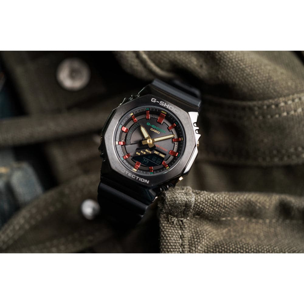 Based on the iconic GM-2100 and GM-S2100 models — the latest colorway from the GM-2100CH and GM-S2100CH series has touches of gold, green and red accents. Paired with the classic chic black watch face and band, it's a perfect set for this festive season.