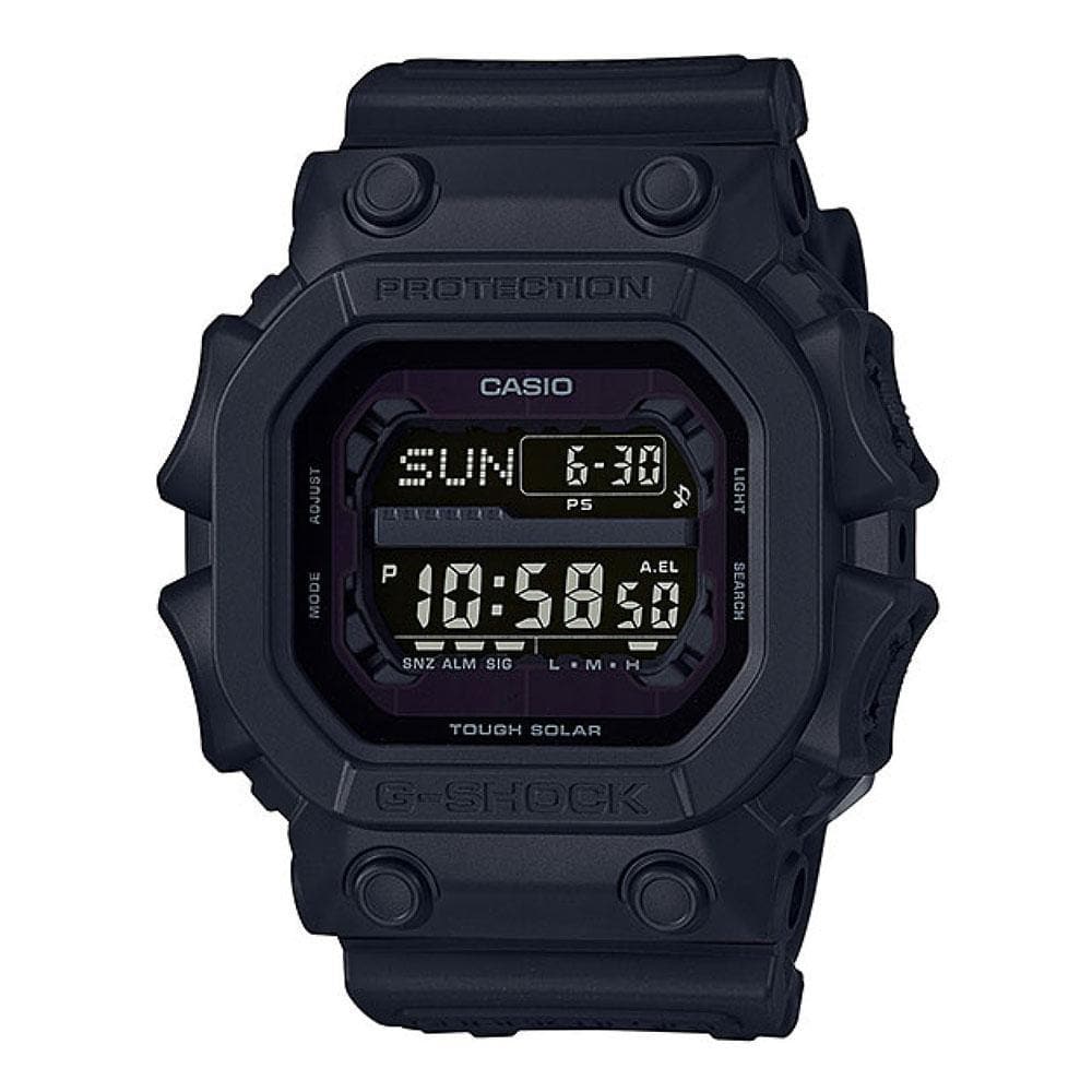 From G-SHOCK, the watch that sets the standard for timekeeping toughness, comes the latest models to feature basic G-SHOCK black that captures the essence of one-tone resin. This model is based on the GX-56, which is designed to withstand impact from any direction. A simple matte black finish allows the form of the watch itself to come out, while the buckle have a black ion plate finish.