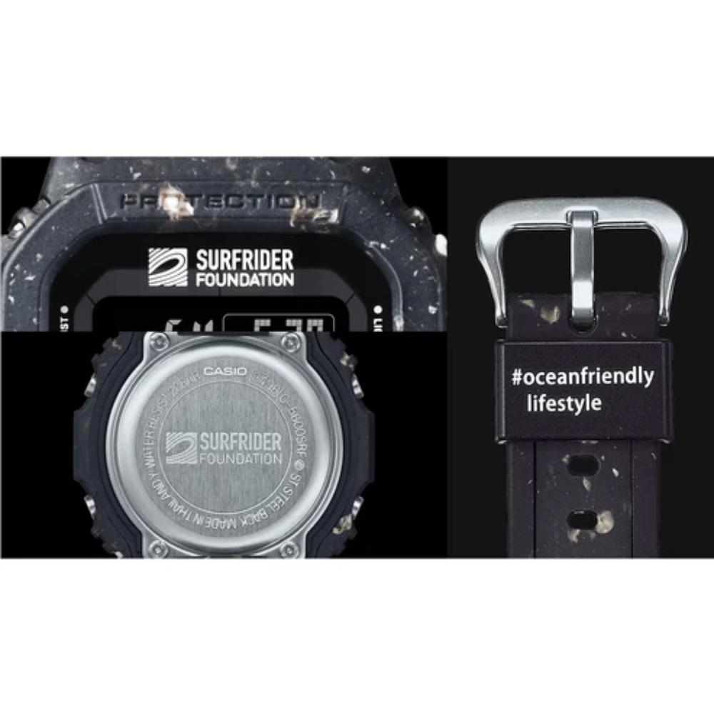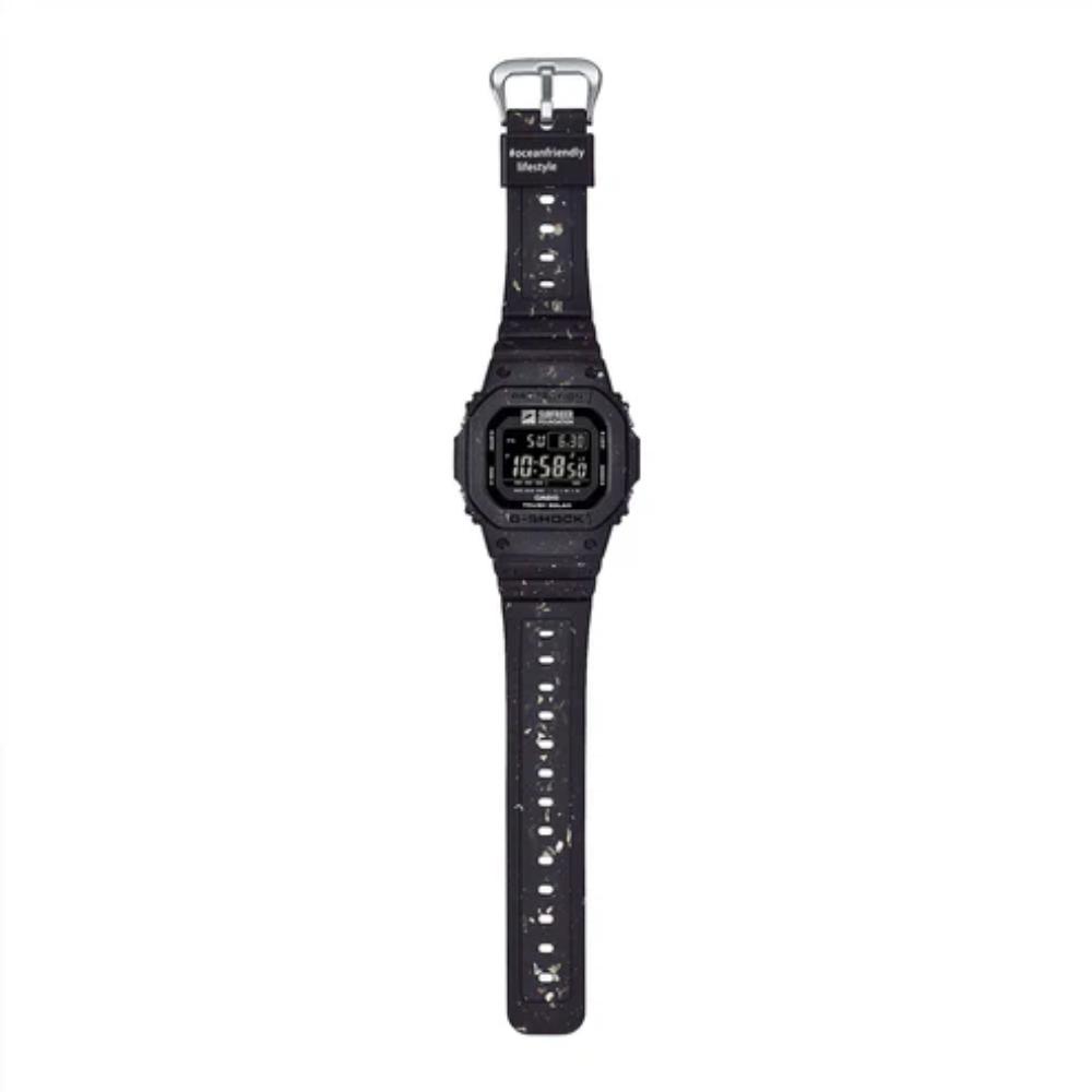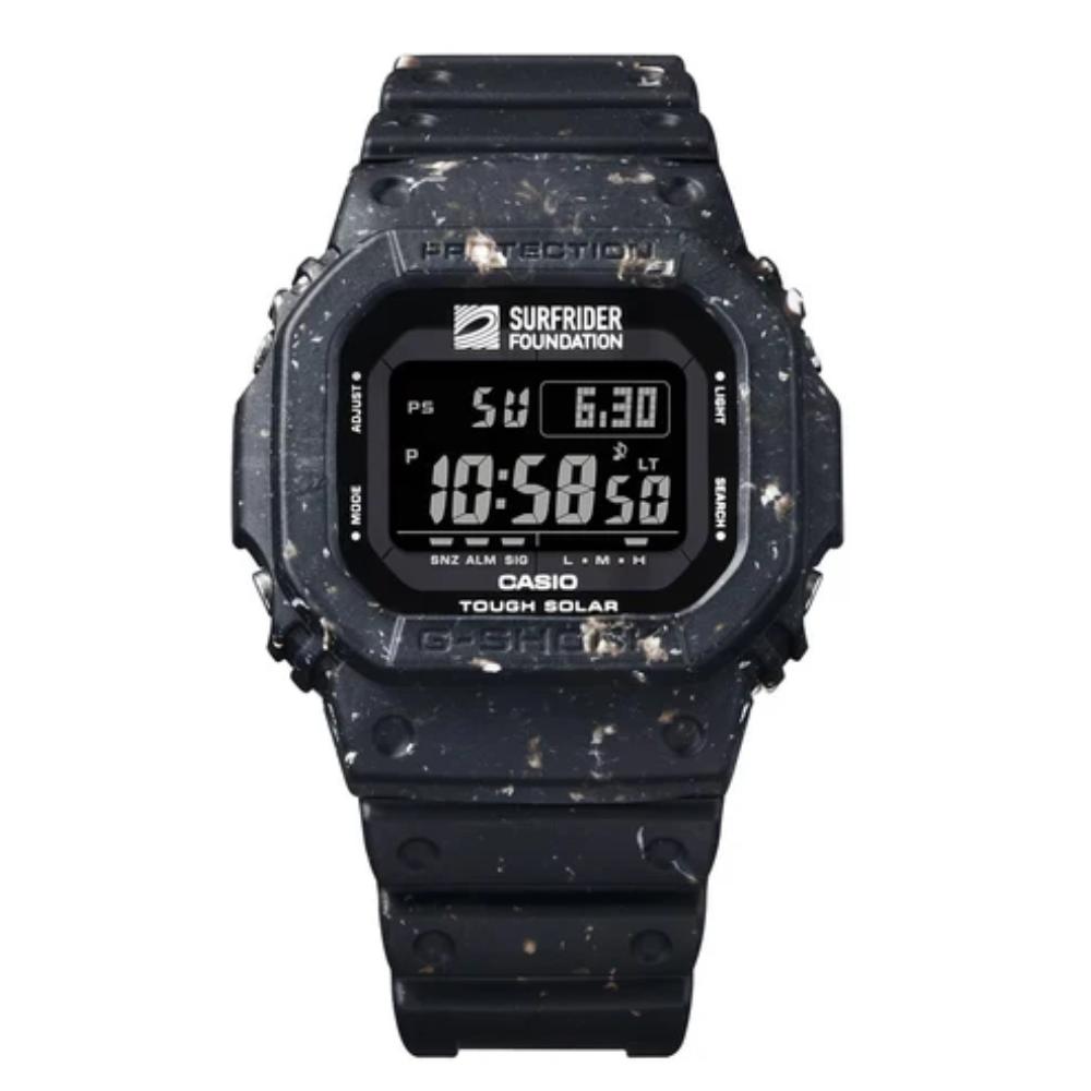 Equipped with Tough Solar to charge the watch from sunlight, the G-5600 boasts a bezel and band made of recycled urethane, reducing the environmental impact of resin scraps that would otherwise be