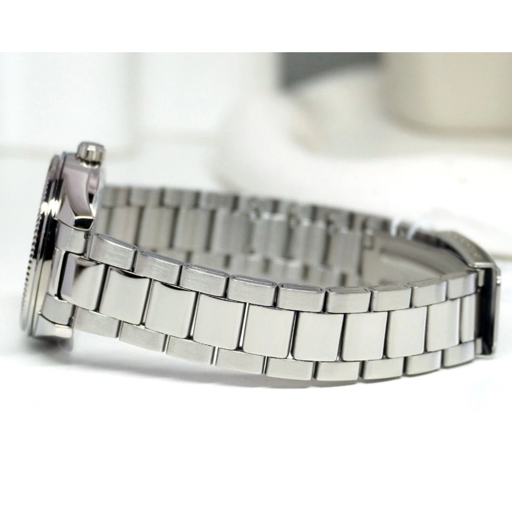 The easy-read date display at the 3 o’clock position adds an extra handy touch. Water resistance up to 50 meters frees you from worry, even on rainy days.