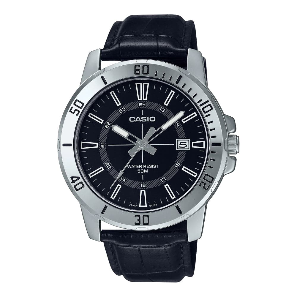 Go sporty and stylishly bold with a metal analog timepiece featuring a thick bezel.