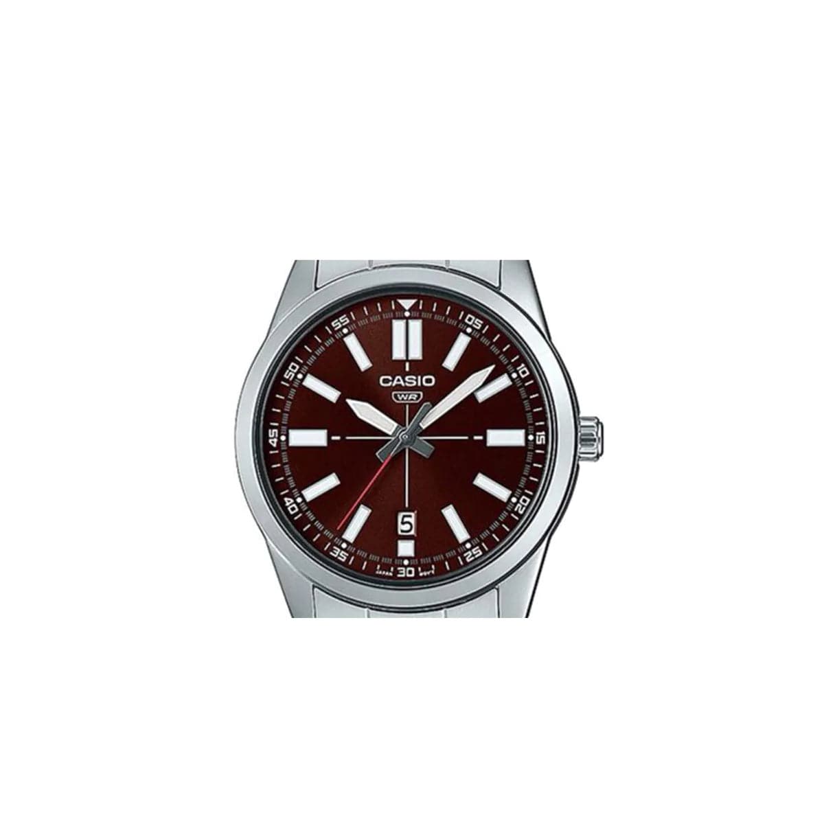 The minimalist analog design features a handy date display at the 6 o'clock position. Water resistance for daily use frees you from worry when washing up or out in the rain.