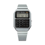 Indulge your love for gadgety design with a Casio watch with calculator functions in metallic color.