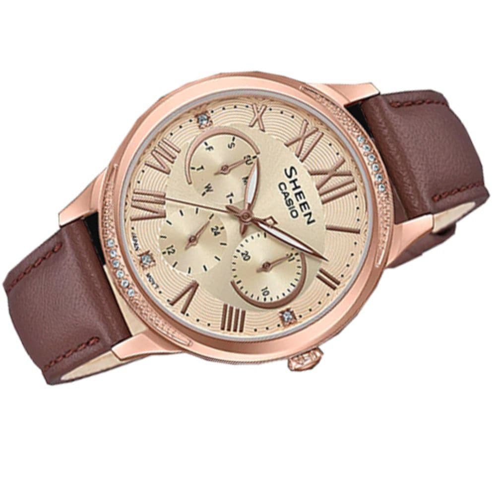 Casio Sheen is the new brand of ladies watch from Casio. Casio Sheen series are purely analogue timepieces that is unique for daily wear as it is versatile, tailored to meet the high demands of modern and confident women. The Casio Sheen series features exquisite and luxury materials such as titanium, ceramic, sapphire glass, genuine leather and Swarovski elements crystals, worked flawlessly into each timepiece with the utmost care.
