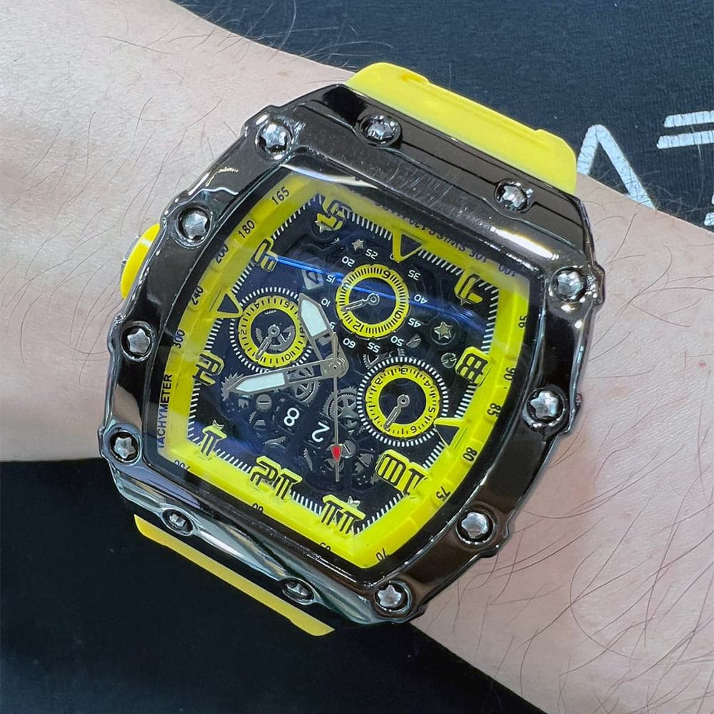 Chronograph Yellow Silicone Strap Men Watch H2-9179G-BK-YW