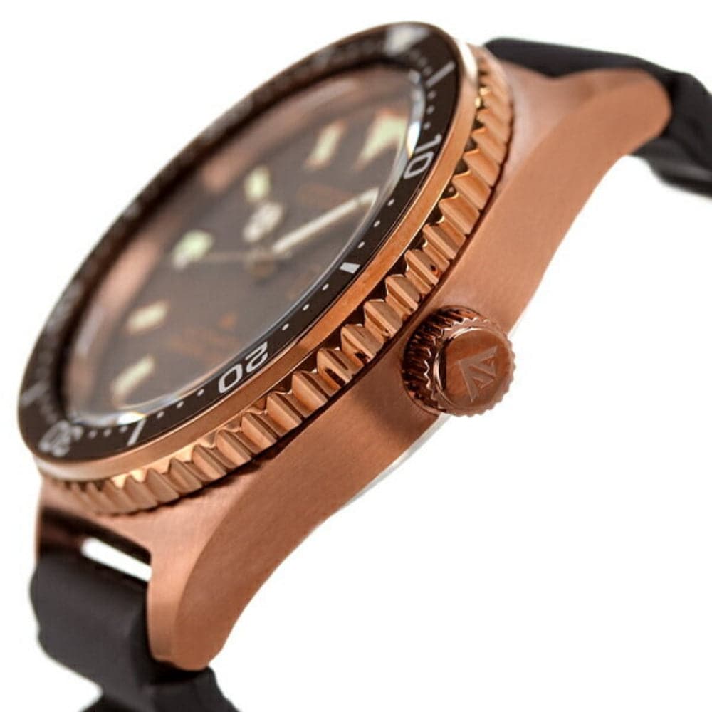 Citizen Promaster Marine Series Mechanical Diver NY0125-08W - men's watch manufactured by Citizen. It has Japanese automatic movement and 8204 calibre. Stainless steel, gold plated case of round shape. Case dimensions are 41 mm. in diameter and 13.7 mm. in thickness. The dial of this Citizen watch is brown. Display type: analog. This timepiece has mineral glass. Polymer band, band color: black. 200 m. water resistance. The watch is from Promaster collection. The following features are equipped: antimagnetic, screw-down crown, glowing hands, glowing markers, date, day.