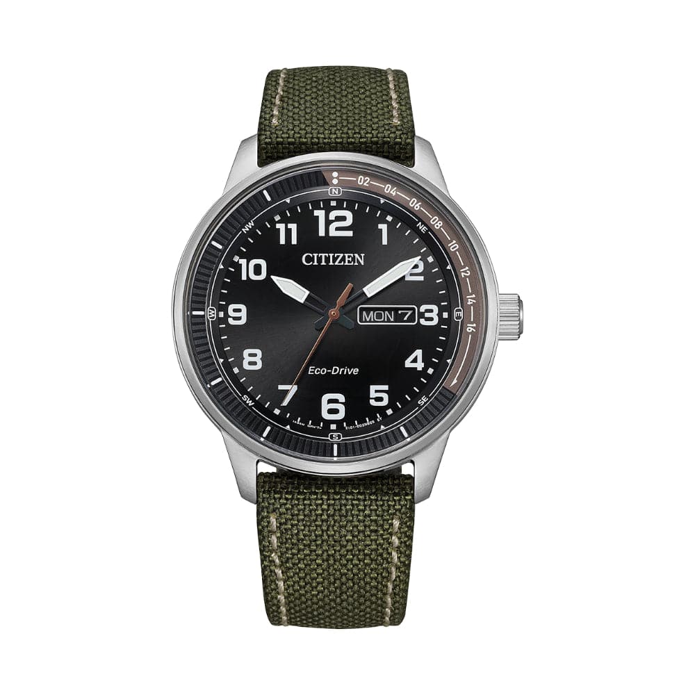 Citizen Eco-Drive Black Dial Green Nylon Strap Men Watch BM8590-10E