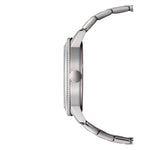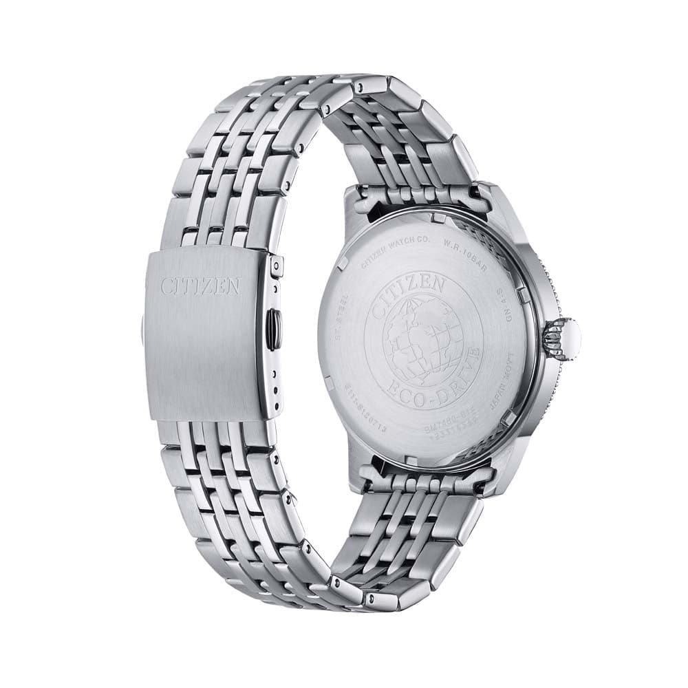 Minimalist by design, this is still a tactical watch. The clean, military style design allows for highly visible indexes, made all the clearer by the contrasting black dial color. Powered by Eco-Drive technology promising you will never run out of power, this watch can also be submerged up to 100 meters. The traditional pilot style is perfectly represented by the coin edge bezel lending a classic appeal to this timepiece. With its stainless steel bracelet band, 42.5mm silver stainless steel case and mineral crystal glass, this is a military style watch that you can wear any day of the week. Features 3 hands and date. Calibre E111.