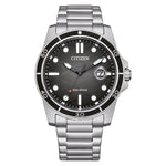 This Citizen watch has a case made of stainless steel with a diameter of 41.5 mm and is fitted with a metal band. Inside the case lies a Citizen movement and the watch features a Mineral crystal.