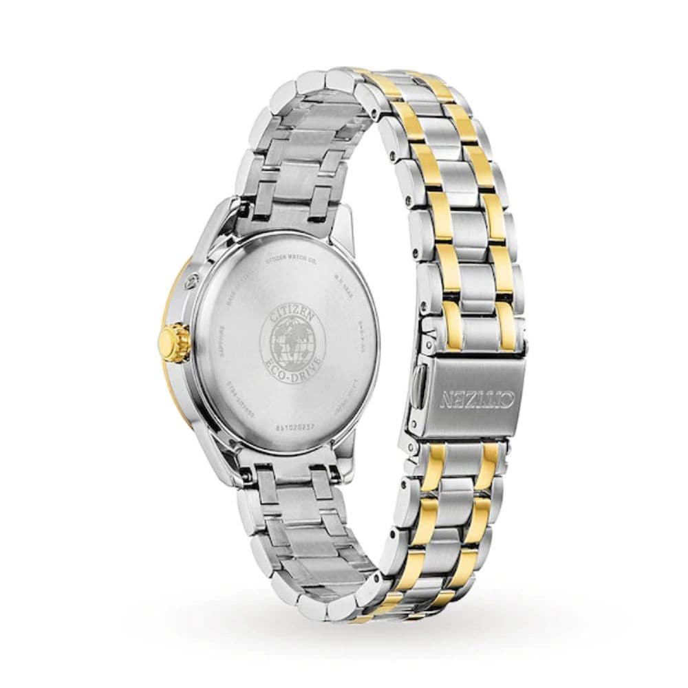 Take a walk on the technical side with the brand new Citizen Ladies' World Time timepiece. Stay on time and in style without staying connected with world time function in 26 times zones, perpetual calendar and date. Featured in two-tone stainless steel with Mother-of-Pearl dial. Powered by Eco-Drive technology – powered by light, any light. Never needs a battery. Caliber number E784.
