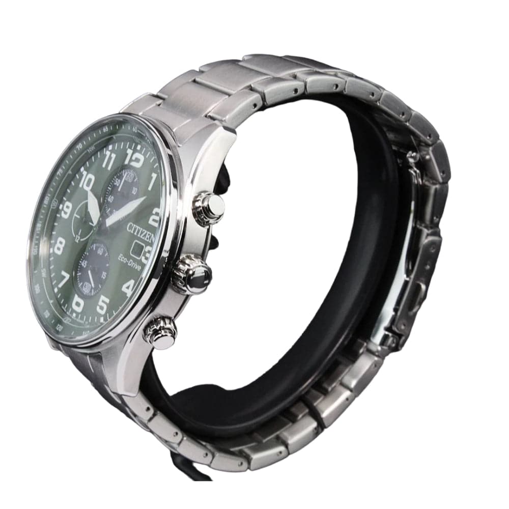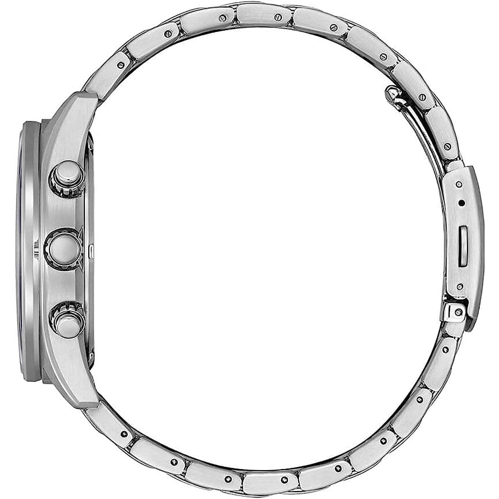 This Citizen watch has a stainless steel case 43 mm in diameter and is fitted with a stainless steel strap. Inside the case lies a Citizen movement and the watch features a Mineral crystal.