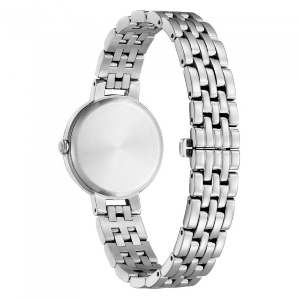 CITIZEN L offers elegant and feminine designs inspired by the beauty of nature include ethically obtained materials and commitments to people and society worldwide. By introduction of Eco-Drive power source that uses light to power watches and does not require battery replacement. CITIZEN L watches aim to create a more sustainable future by using sustainable materials that deliver beauty and functionality without sacrificing the wellbeing of others. Effortlessly sophisticated. A comfortable fit like a loosely worn bracelet for this new CITIZEN L watch. Featured with mother of pearl dial, stainless steel case and bracelet.