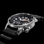 Submerge yourself in the latest Dive watch to join Citizen’s innovative Promaster line. The new timepiece features a smaller, versatile 37mm case size with a silver-tone stainless steel exterior complete with an easy-grip dive bezel and screw-down crown at 4 o’clock, with the bold design secured to the wrist via a bold black polyurethane strap. The dark dial features oversized hands and applied markers that add to its high legibility, while accents of orange and a bright luminous material ensure quick readability to even the deepest depths. At the 4 o’clock position is a thoughtful date window, adding another element of functionality to this action-ready diver. Maintaining the robust standards of the Promaster Collection, the timepiece is water resistant up to 200 meters. Powered by Citizen’s proprietary Eco-Drive technology to provide light-powered vitality continuously and sustainably without ever needing a battery. Caliber E168.