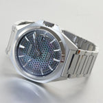 Taking it up a notch with the relaunch of the Series 8 Collection. This model features a fresh new look combining a metal lattice with a mother of pearl layer on the dial. The dial has three layers – a metal dial on the bottom, a mother-of-pearl layer in the middle, and a metal lattice with index markers on the top. This innovative dial design creates a delicate pattern. The design provides an attractive contrast between the straight edges of the octagonal case and the clean lines of the watch face. This watch evokes the spirit of the Series 8 collection with its understated style. Other features include Sapphire glass with anti-reflective coating and 48 hours power reserve once fully wound.