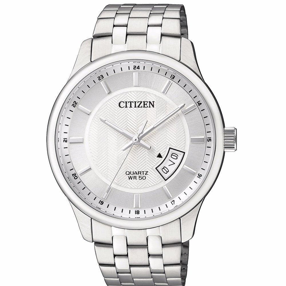 A more modern take on minimalism, beauty meets sophistication in this superiorly evolved Citizen Quartz watch. The watch is gracefully styled taking account of the minute details to bring out the splendour of time keeping. The dial is two layered with vertical pattern running across the inner dial and embosed hour markers resting on the outer dial while the date display does the task of adding substance to the glamour. Featured here in a silver dial and stainless steel multilink bracelet to complete the medley. Citizen Quartz watches are powered by high precision Quartz movement which is Made in Japan, they are extremely reliable and have very low maintence to give you accurate timekeeping effortlessly.