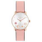 This elegant Coach watch is a beautiful fusion of style and functionality, featuring a 28mm rose gold-tone stainless steel case and a soft pink leather strap. The silver-tone dial adds a touch of sophistication, while the quartz movement ensures precision timekeeping.