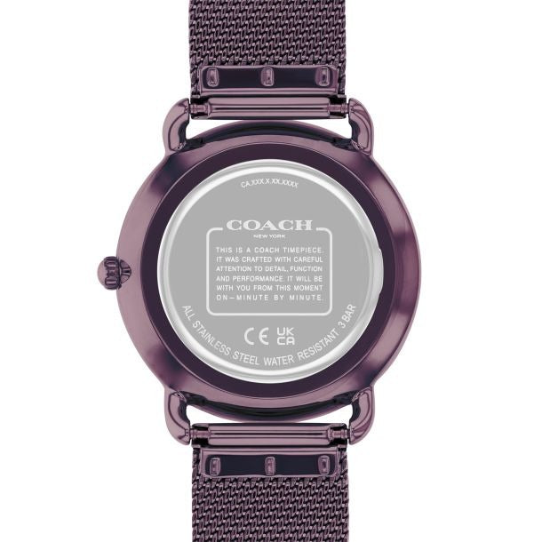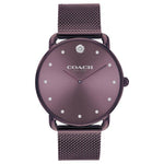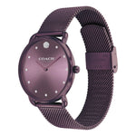 This stunning timepiece showcases a bold and elegant purple design, perfect for adding a pop of color to your everyday look. With its sleek stainless steel mesh bracelet and minimalist design, it offers both style and practicality.
