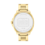 The Coach Kitt Crystal Chronograph Gold Steel Watch blends sophistication and functionality. Featuring a luxurious gold-tone design, this timepiece has a 38mm case and offers a 2-year warranty. Its water resistance of up to 30 meters makes it a reliable choice for everyday wear.