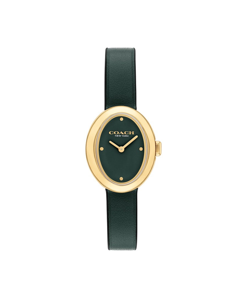 Designed with modern minimalist sensibility, the Coach Sammy is a refined timepiece perfect for everyday wear. Featuring a gold-tone case, a striking green lacquer dial, and a matching green leather strap, this watch is a stylish accessory for any outfit.