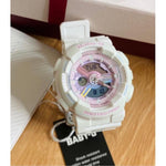 From BABY-G, the casual watch for active women, come new models decorated with sea glass colors. Sea glass is natural frosted glass found on beaches along bodies of salt water, which takes decades to acquire its characteristic texture and shape. The blue, pink, and white matte semi-transparent material used for the cases and bands of these models creates a sea glass like look. Glittering gold metal parts on the faces create the image of light reflecting from sea glass for designs that are perfectly suited for summertime beach wear.