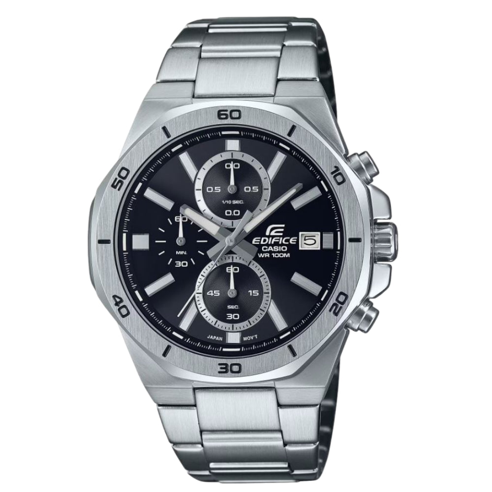 Make a bold, sophisticated statement with the premium look and feel of a luxe EDIFICE sports chronograph classic. The solid metal band, crafted in H-shaped links, delivers an even more comfortable fit for your wrist, and the scratch-resistant mineral glass protects your timepiece, freeing you from worry.