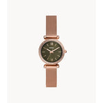 Black PVD stainless steel case with a olive leather strap. Fixed black PVD bezel. Black dial with luminous black hands and Arabic numeral hour markers. Minute markers around the outer rim. Dial Type: Analog. Luminescent hands. Three multi-function displays: 24 hour, date and day of the week. Quartz movement. Scratch resistant mineral crystal. Pull / push crown. Solid case back. Case diameter: 44 mm. Case thickness: 12 mm. Round case shape. Band width: 22 mm. Tang clasp. Water resistant at 100 meters / 330 feet. Functions: date, day, hour, minute, second. Casual watch style. Fossil Aeroflite Multi-Function Black Dial Olive Leather Men's Watch CH2941.