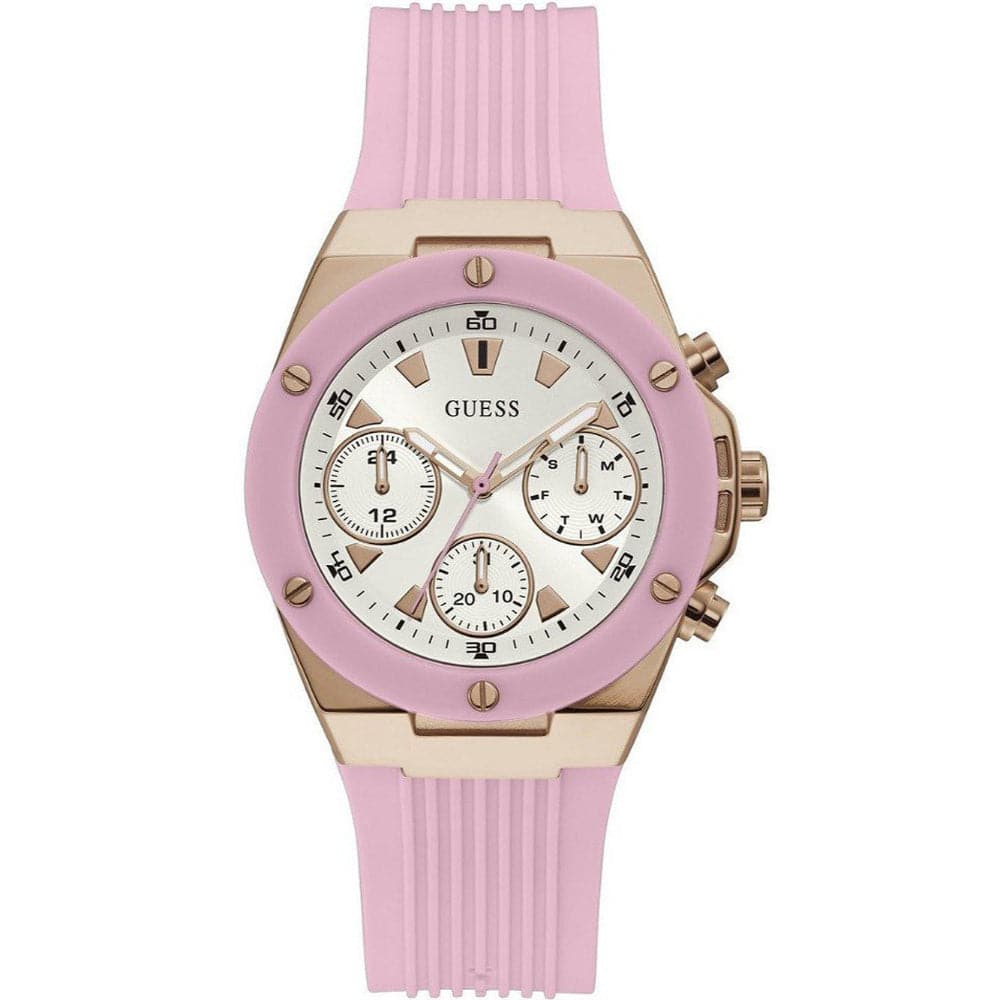 GUESS ROSE GOLD TONE CASE PINK SILICONE GW0030L4 WOMEN'S WATCH