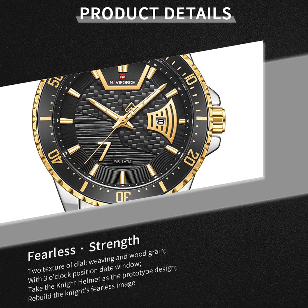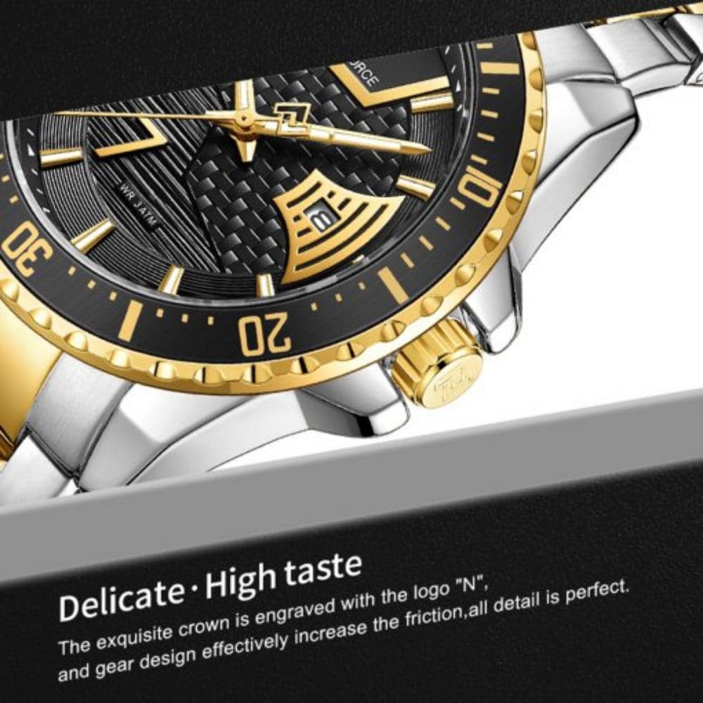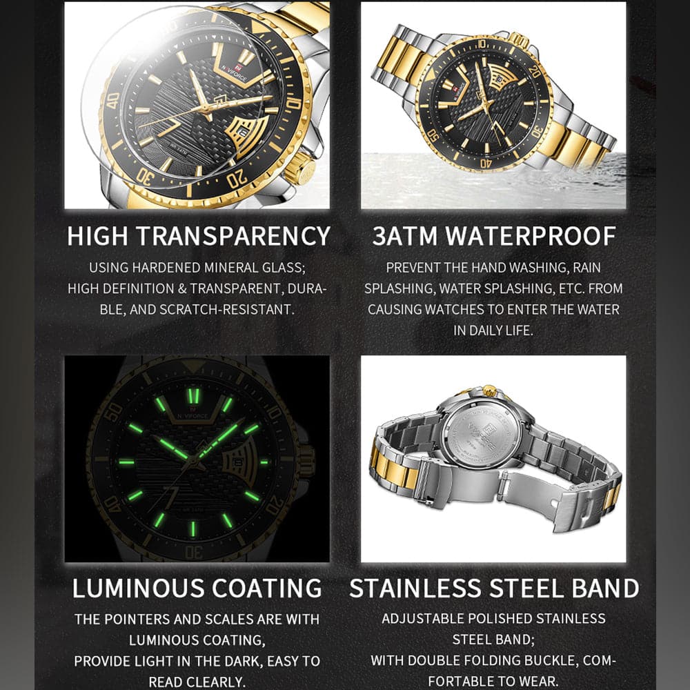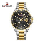 NAVIFORCE NF9191 S/G/B QUARTZ BLACK DIAL TWO-TONE STAINLESS STEEL MEN'S WATCH