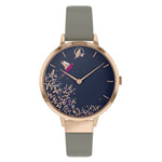 SARA MILLER CHELSEA NAVY HUMMINGBIRD BLUE DIAL GREY LEATHER WOMEN'S WATCH SA2022