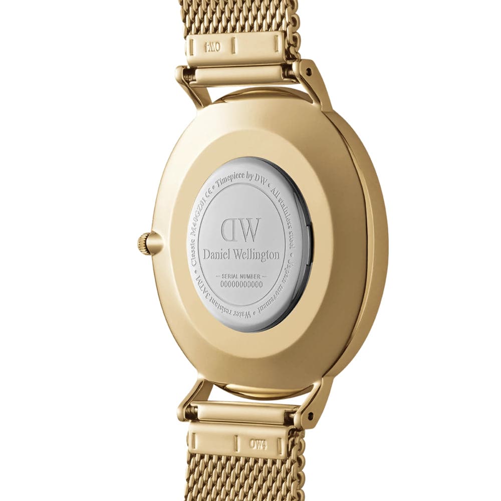 Modern or classic? This watch brings together the best of both worlds. The minimalist, ultra-thin watch face featuring our signature twelve indexes is perfectly supported and emphasized by the mesh bracelet in timeless gold. The sunray finish of the dial adds another layer of effortless sophistication. This timepiece also has an interchangeable strap, so you can make it sporty by pairing it with a NATO watchband.