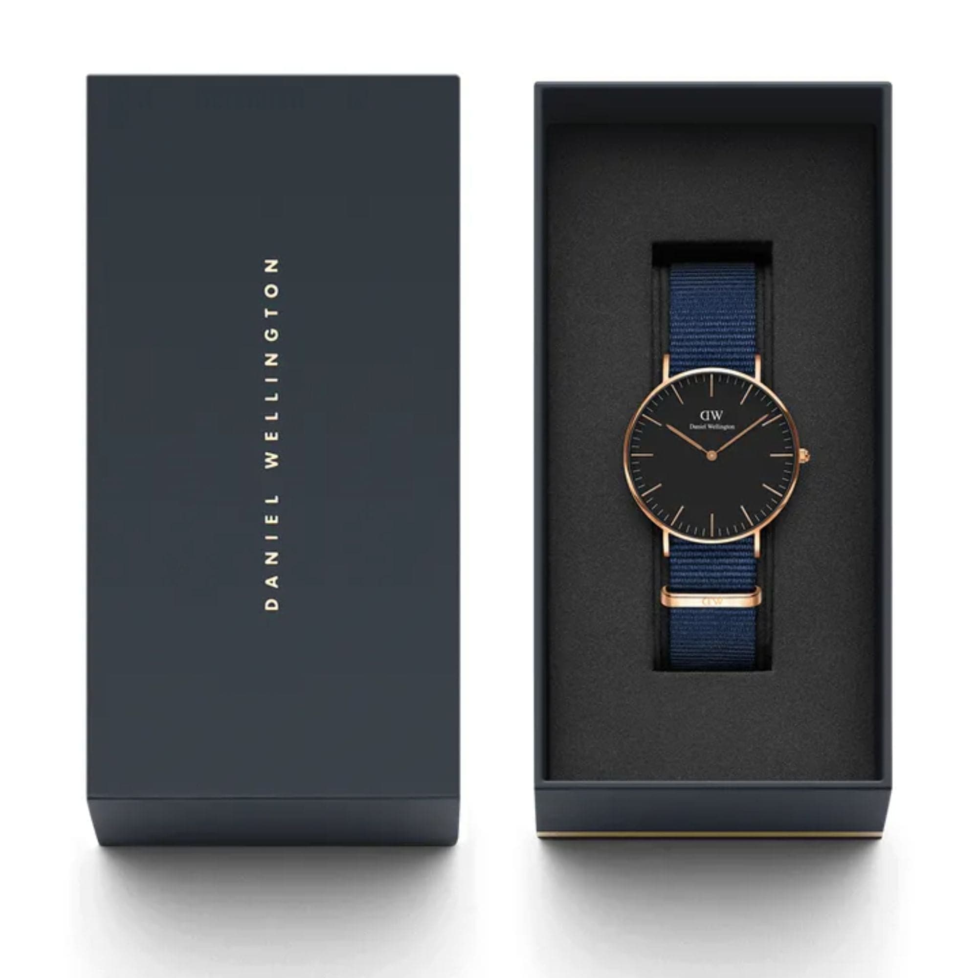 DANIEL WELLINGTON CLASSIC 36 BAYSWATER ROSE GOLD STAINLESS STEEL DW00100281 BLUE NATO STRAP UNISEX WATCH