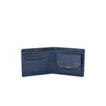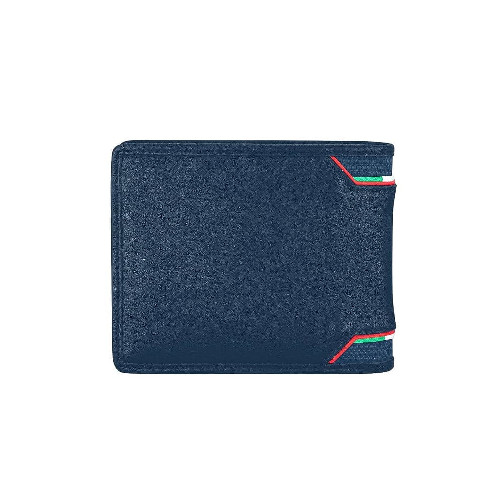 Elegante men Wallet. Blue genuine leather with blue canvass inserts. Ducati corse logo applied on a metal plaque. Internal with card holders on both sides with small Italian flag applied and Ducati Corse logo embossed.