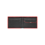 Elegante men Wallet. Red & black genuine leather with black canvass inserts. Ducati corse logo applied on a metal plaque. Internal with card holders on both sides with small Italian flag applied and Ducati Corse logo embossed.