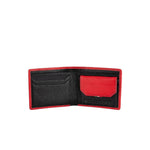 Elegante men Wallet. Red & black genuine leather with black canvass inserts. Ducati corse logo applied on a metal plaque. Internal with card holders on both sides with small italian flag applied and Ducati Corse logo embossed.