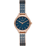 Extremely dainty and alluring, Rivoli's analog watch from Elle is perfect to complement your refined look. Rivoli's analog watch features a blue textured dial, three-hand movement with dash markings at all hours and a two-tone stainless steel bracelet. This watch is a sheer genius, so all you need to do is abide, and then let it adorn your wrist and do what it does best.