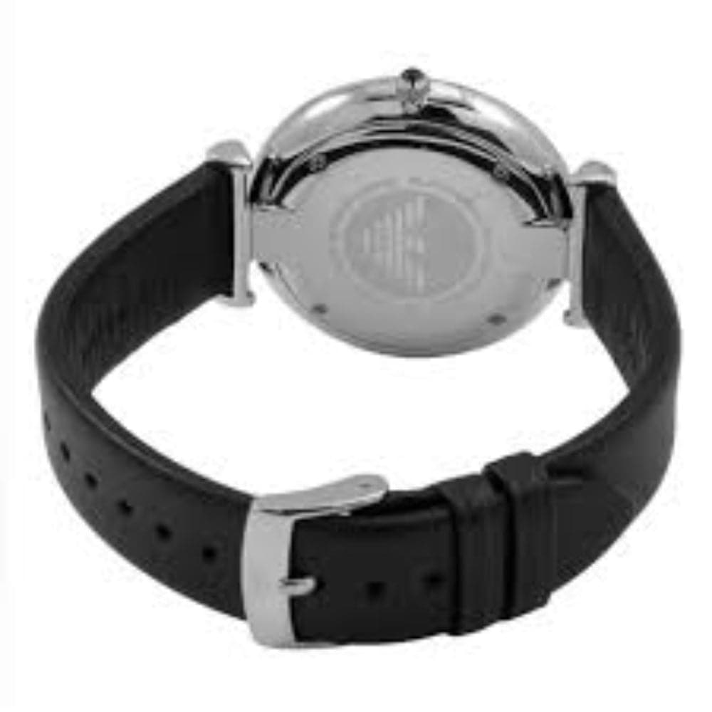 EMPORIO ARMANI ANALOG QUARTZ SILVER STAINLESS STEEL AR1674 BLACK LEATHER STRAP MEN’S WATCH
