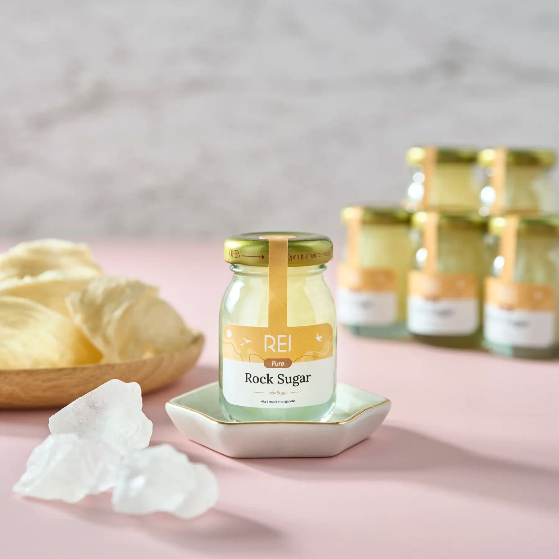 For the purists, this classic rock sugar combination pleases the taste buds & also provide soothing comfort for an irritated throat. In addition, the thick concentration of Rei's bird’s nest contains glycoproteins & abundance of amino which are essential skin repair and general health when consumed regularly.