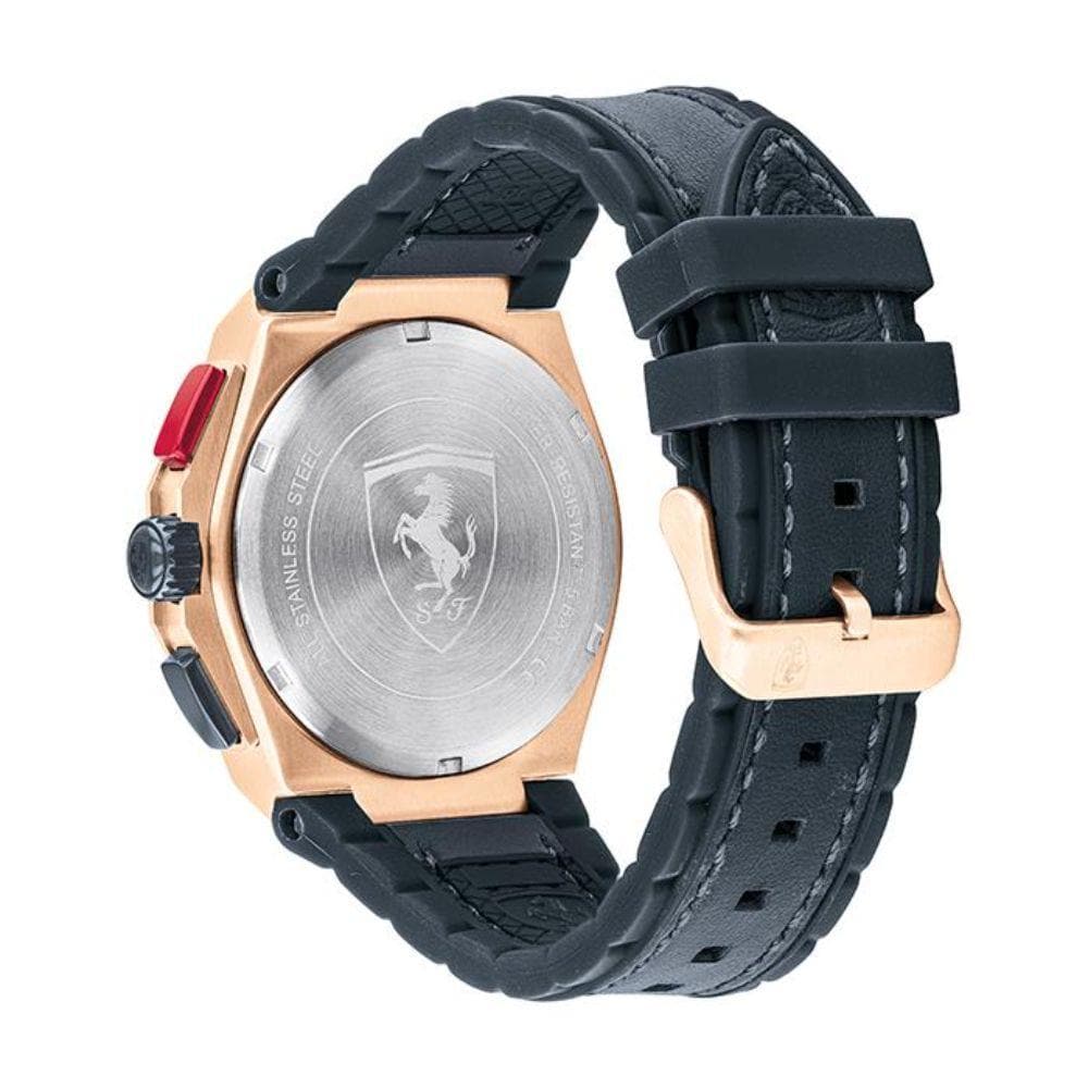 The Scuderia Ferrari Aspire collections offers distinctive sport and sophistication that any Scuderia Ferrari fan would be proud to wear. The 44mm chronograph boasts a striking, angular case, tachymeter bezel and a red-accented pusher. The dial features carbon-fiber textures and subtle, sunray finishes. The watch is available on a mixed-material, leather and silicone strap – exemplifying the integration of sport and luxury.
