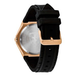 Sophisticated sport and elegance converge to deliver the Aspire collection and its sleek, sport-luxe design that distinguishes it from the competition. The 44 mm timepiece is characterized by its angular case and bezel inspired by the bolted surface of the Ferrari single-seater. Its 3-hand dial boasts a distinctive, translucent design that conspicuously reveals the movement beneath. The dial is accented by dynamic indexes that draw attention to the centre of the dial, which offers a glimpse into the engine of the timepiece.