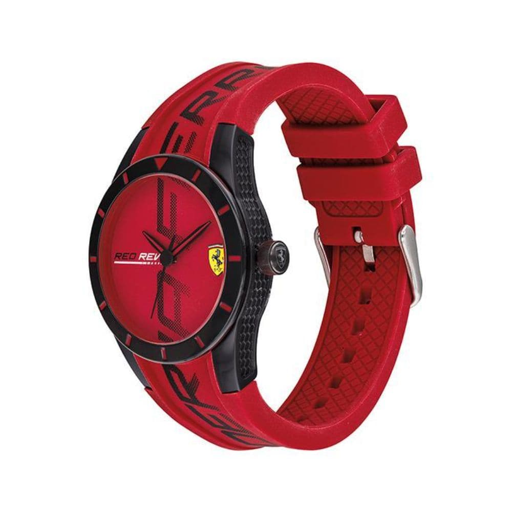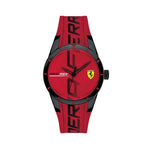 The dynamic RedRev collection continues to capture the thrill of race day with bold and eccentric colorways and designs. Inspired by the layered structure of a race car’s monologue, the bold honeycomb texture runs along the sides of the polished ABS case. The Scuderia Ferrari logo stretches through the dial and onto the strap, capturing of the speed and motion of iconic racing team.