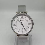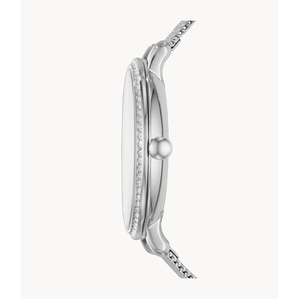 Meet our leading lady of style—Carlie combines rich materials and elegant design to create one glamorous accessory. This 35mm Carlie features a satin silver dial with gold-tone Roman numerals, glitz bezel, three-hand movement and terracotta leather strap.